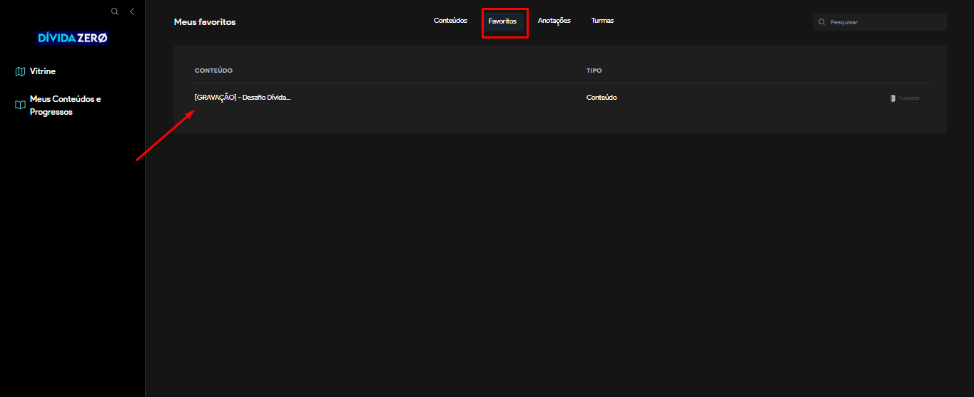 Esta é a área onde você acompanha tudo o que já possui acesso na plataforma.