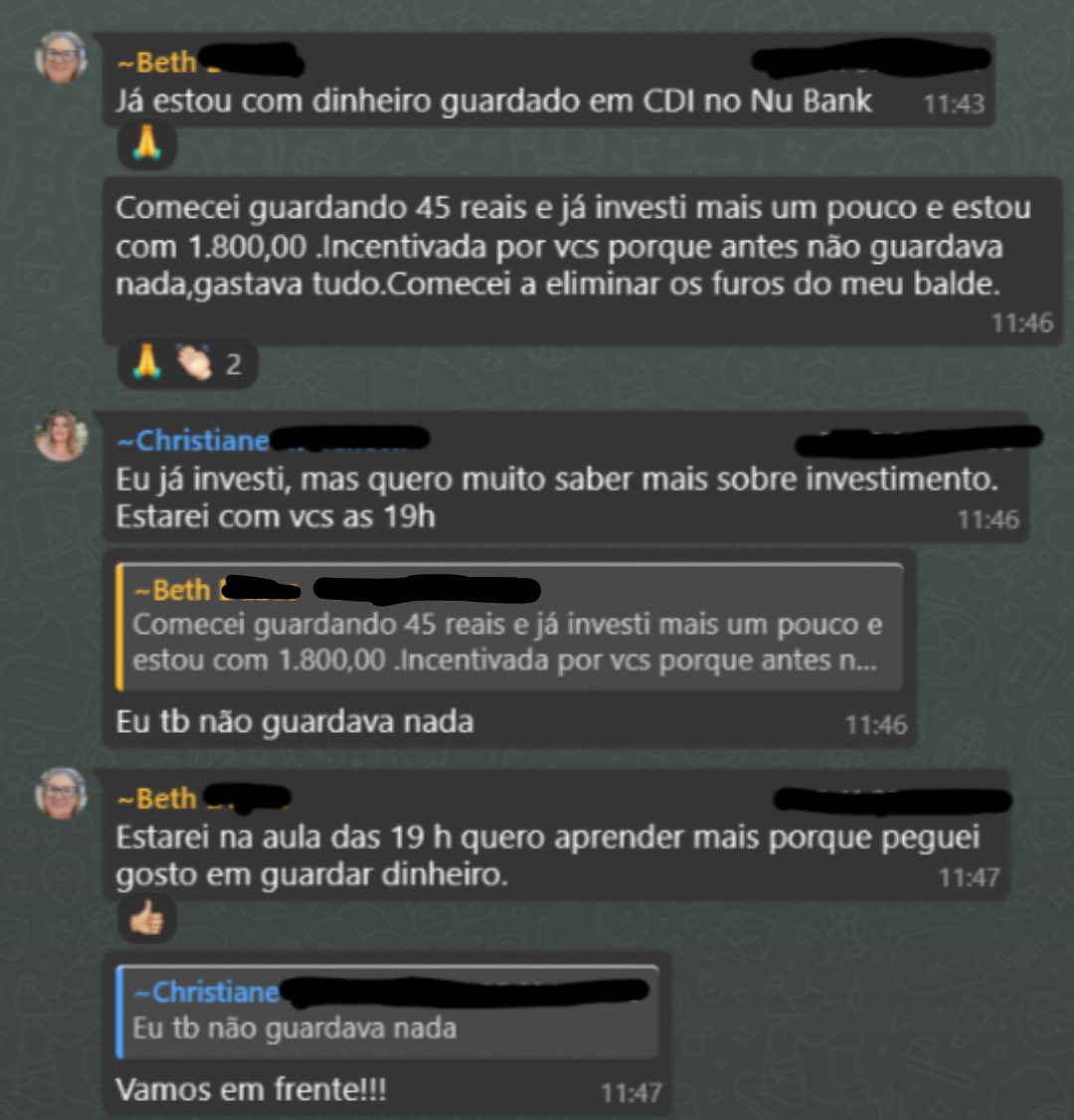 A comunidade que mais transforma vidas financeiras no Brasil. Ambiente de compartilhamento, suporte e resultados reais, onde alunos e mentores caminham juntos rumo à independência financeira.